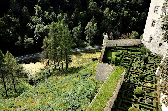Ogrody parterowe prezentują się wspaniale z tarasu widokowego bastionu, w którym znajduje się wspomniana wyżej restauracjo-kawiarnia. Mnie osobiście zachwyciły szczyty murów, na których posadzono niskie rośliny skalne. Wcześniej takiego wykończenia kamiennych ogrodzeń nie widziałam.